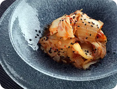 Kimchi pochodzi z Korei, nie jest więc tsukemono w klasycznym rozumieniu tego słowa. W KOKU Sushi jednak chętnie korzystamy z tej kiszonki, ponieważ jej bogactwo ostro-kwaśnego smaku jest nie do podrobienia.