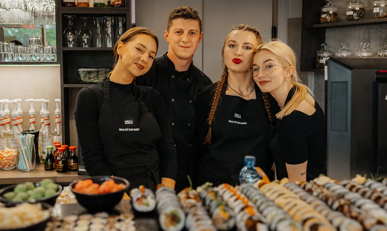 KOKU Sushi to marka którą tworzą ludzie pełni uśmiechu, życzliwości i spójności. Nauczymy wszystkiego od podstaw, poznasz tajniki kuchni japońskiej. Zrób pierwszy krok, czekamy właśnie na Ciebie!